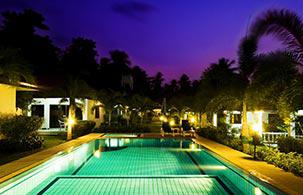 Twin Room Bungalows, setting on pool side, composes two large bedrooms & two bathrooms. Each room features cable television, refrigerator and also private controlled air-conditioning.